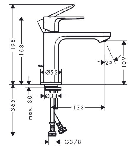 consists of: single lever basin mixer, waste set