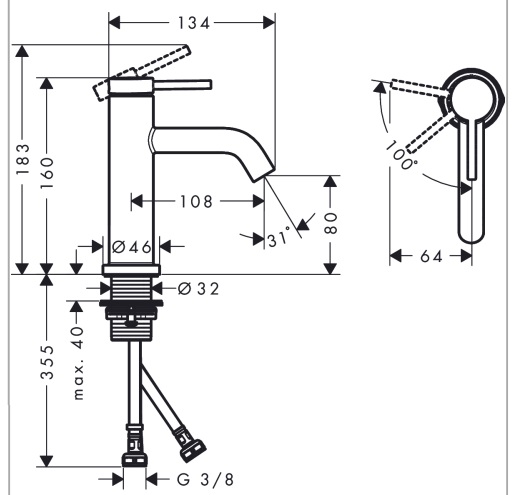 spout height: 80 mm
