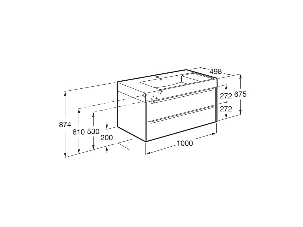| Description | Base unit / Doors and drawers combination: 2 drawers Base unit / Structure: Drawers Basin / Integrated shelf Basin / Shelf position: On both sides Basin / Taphole configuration: 1 taphole in the middle Basin shape: Square Installation type: Wall-hung, Wall-hung with optional legs Material / Base unit: Chipboard Material / Basin: FINECERAMIC ® Space-saving waste included Tap installation: On the basin |