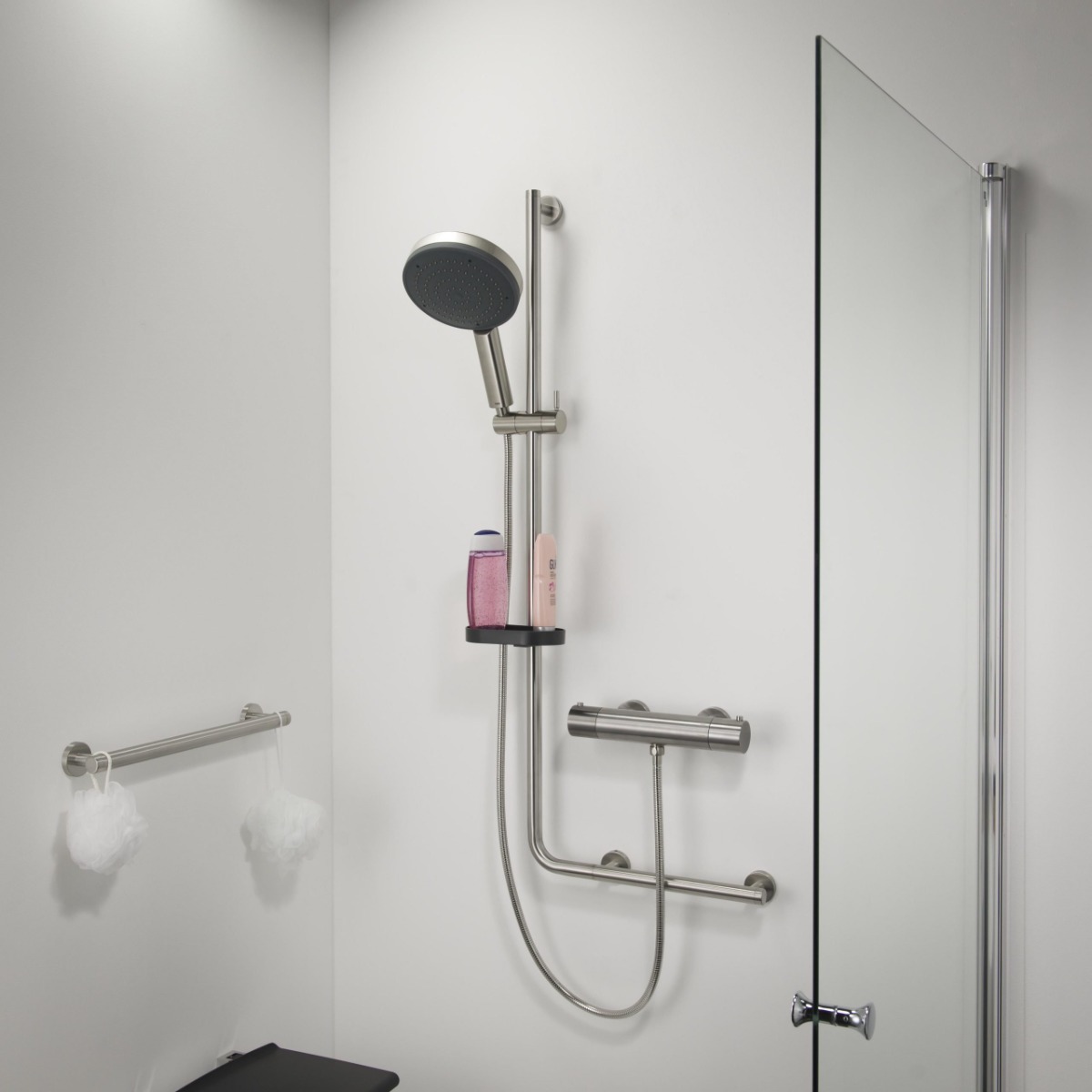 The Safety Bar (also known as grab rail) has an ergonomically sound rail diameter of 25mm and the horizontal section provides reliable support for users weighing up to 150kg. An Anti Slip Grip (sold separately) can be fitted over the grab rail for even more security.