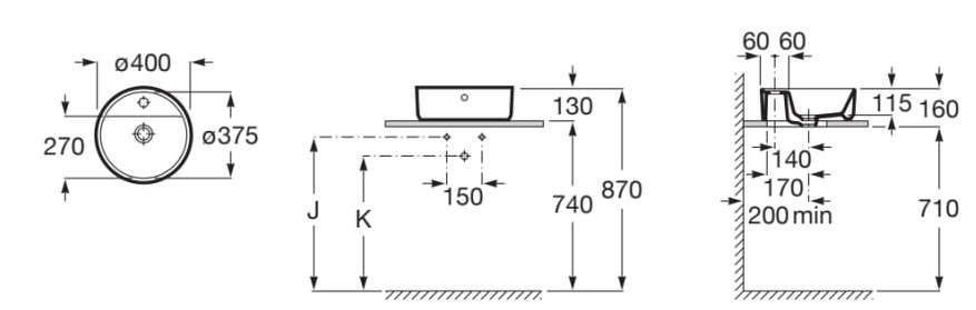 | Description | Back glazed Basin capacity (l): 3.4 Bowl depth (mm): 115 Bowl length (mm): 375 Bowl position: Central Bowl width (mm): 270 Fixing kit: Not included Installation type: Bowl / On countertop Integrated shelf Internal Shape: 1 - Round Material: Vitreous china Shape: Round Taphole configuration: 1 taphole in the middle Trap: Not included Waste: Not included Weight (Kg): 10 |