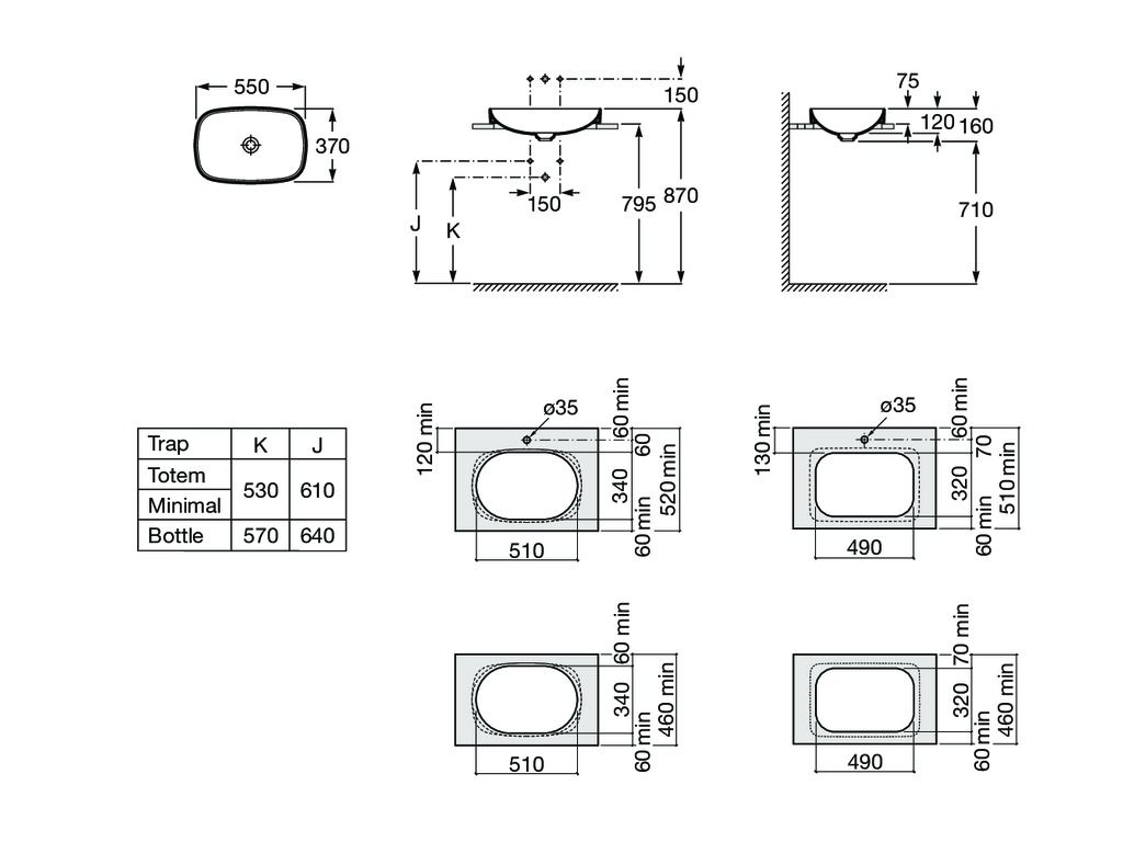 | Description | Basin capacity (l): 13.5 Bowl depth (mm): 120 Bowl length (mm): 550 Bowl position: Central Bowl width (mm): 370 Fixing kit: Not included Installation type: Drop-in / Countertop Material: FINECERAMIC ® Publication Status Taphole configuration: No tapholes Weight (Kg): 9.6 Without overflow |