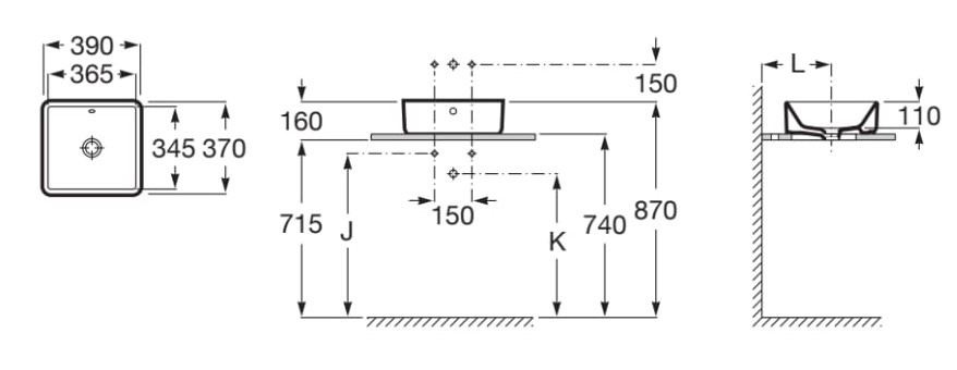 DescriptionBack glazed Basin capacity (l): 3.9 Bowl depth (mm): 110 Bowl length (mm): 365 Bowl position: Central Bowl width (mm): 345 Fixing kit: Not included Installation type: Bowl / On countertop Internal Shape: 2 - Square Material: Vitreous china Shape: Square Taphole configuration: No tapholes Trap: Not included Waste: Not included Weight (Kg): 11