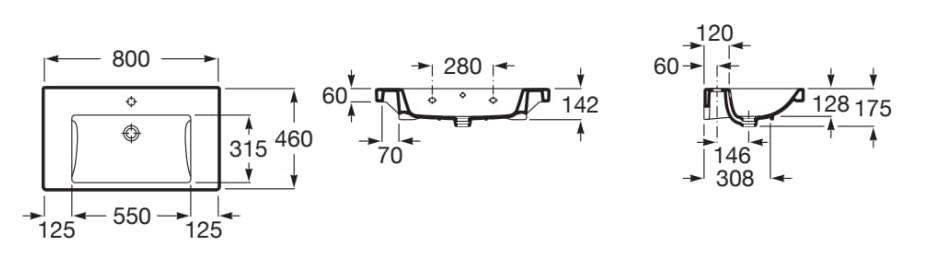 | Description | Basin capacity (l): 8.8 Bowl depth (mm): 128 Bowl length (mm): 550 Bowl position: Central Bowl width (mm): 315 Fixing kit: Included Glazed base Installation type: Wall-hung Material: Vitreous china Shape: Rectangular Taphole configuration: 1 taphole in the middle Trap: Not included Waste: Not included Weight (Kg): 22 |