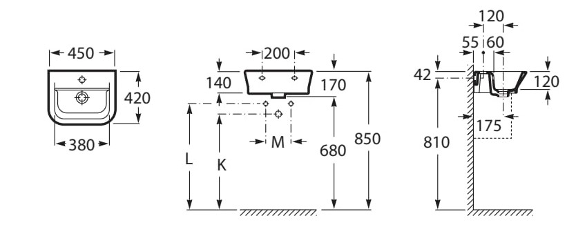 | Description | Bowl position: Central Installation type: Wall-hung Shape: Square Taphole configuration: No tapholes Waste: Not included |