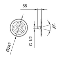 | Description | Adjustable shower head Finish: Chrome Flow rate (l/min - 3 bar): 12 Number of functions: 1 Showerhead diameter (mm): 247 Showerhead shape: Circular Water flow restrictor |