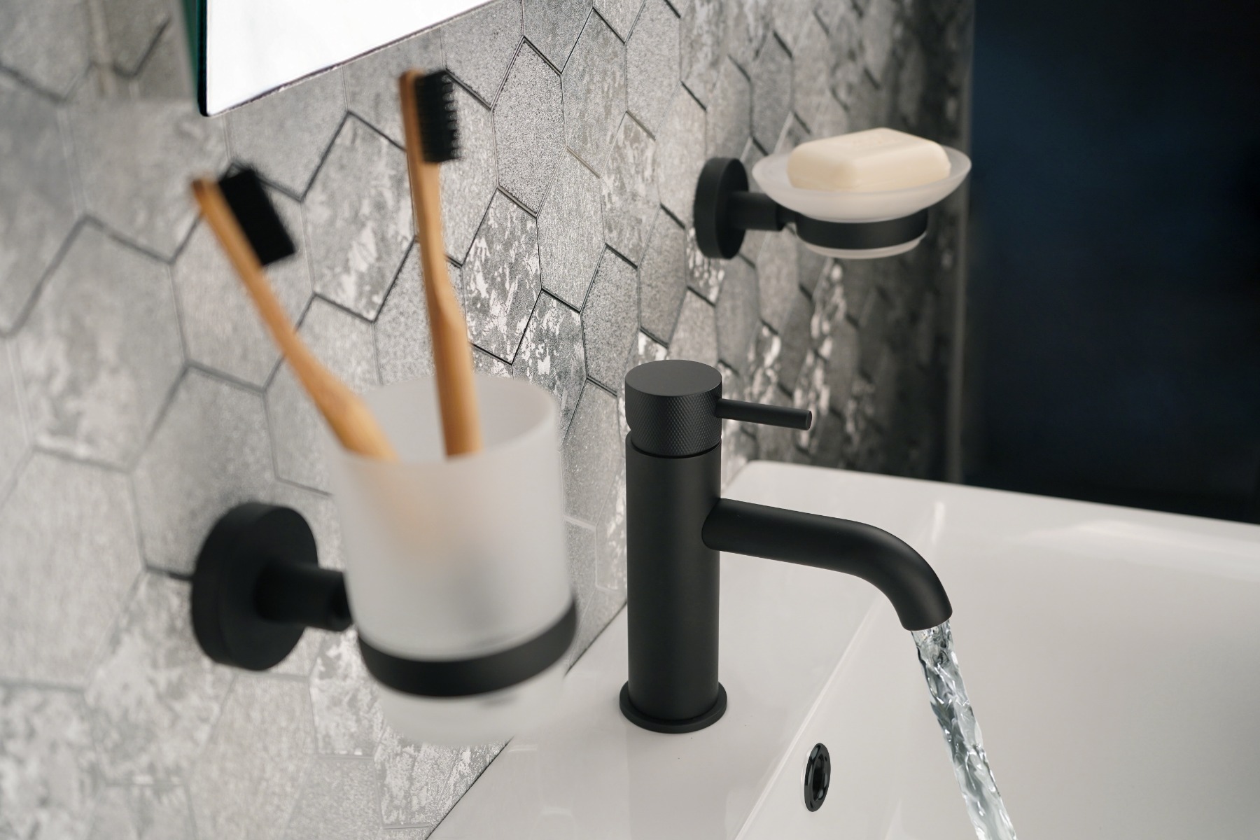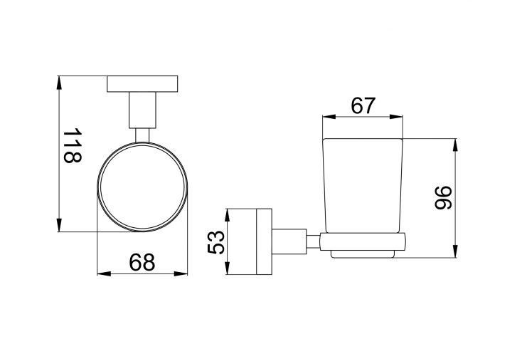 | Description | Height: 96mm, Projection: 118mm, Product Composition: Brass, with matte black finish, Guarantee: 15 Years, VOS tumbler holder |
