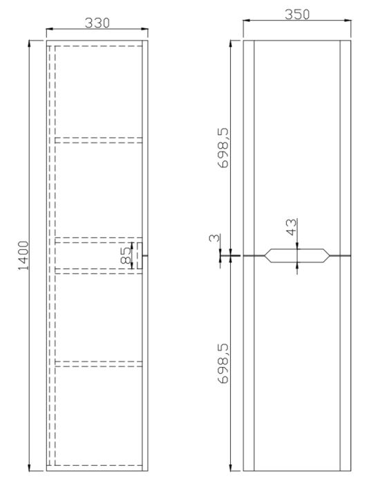 Construction Material Melamine, Installation type Wall Mounted, Supplied Fully Assembled Yes, Number Of Drawers 0, Number Of Doors 2, Soft Close Doors / Drawers Yes, Handle Style Recessed cut out,Handle Finish n/a, Handle Material n/a, Number of Handles 2, Matching handle Part, number n/a, Moisture resistant Yes, Internal shelves 1, Door Opening Width 300, Draw opening Distance n/a, Recommend Concealed Cistern n/a, False Drawers No, Number of False Drawers 0, Can the door be swapped over to open the opposite way Yes, Which side is the door hinge located either, Product Width (mm): 350, Product Height (mm): 1400, Product Depth (mm): 330
