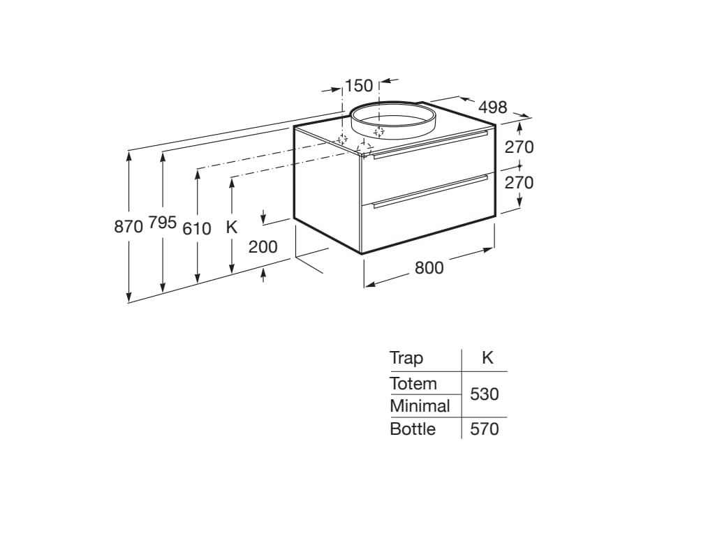 | Description | Basin position: Central Basin type: Semi-recessed Doors and drawers combination: 2 drawers Furniture configuration: Drawers Installation type: Wall-hung, Wall-hung with legs Material: Chipboard Space-saving waste included Tap position: Central |