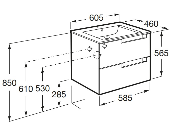 Dimensions / Basin and base unit / Length (mm): 605