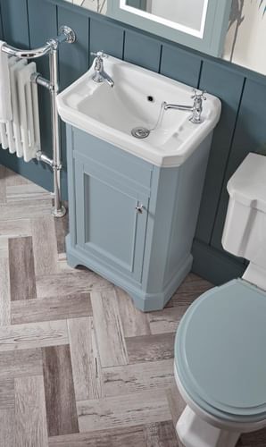 • Bring a touch of classic design to your bathroom with Vitoria. This 500mm in a classic mineral blue finish, is ideal for a cloakroom or en-suite. Team it with a coordinating Vitoria WC to complete the look. A classic style cloakroom basin can also be purchased to complete the look of your new Vitoria cloakroom unit.