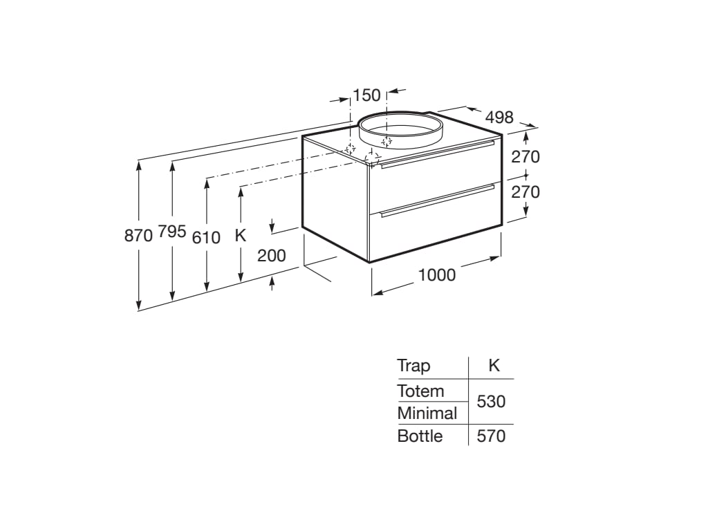 Basin position: Central Basin type: Semi-recessed Doors and drawers combination: 2 drawers Furniture configuration: Drawers Installation type: Wall-hung, Wall-hung with legs Material: Chipboard Space-saving waste included Tap position: Central