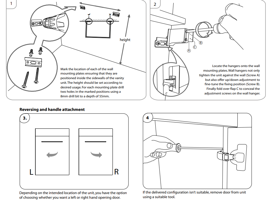 | Description | Kobe’s simple silhouette with its sleek ceramic basin makes this a range that lives for modernity. It’s an ideal solution for all size rooms, from family bathrooms to cloakrooms where simpler is sometimes better. Kobe is available in 4 different styles to suit your needs; whether it’s a choice of wall mounted or freestanding 450mm wide cloakroom units or the more generous 560mm or 700mm sized units, perfect for larger bathrooms.Features soft close functionality for quiet and controlled closure.Chrome handle |