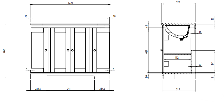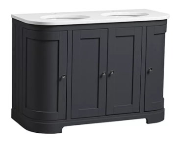 DescriptionA stately yet practical design, the Lansdown Curved Underslung Unit is the ideal centrepiece for your traditional bathroom suite. Traditional 5 piece doors, grooved side panels and a hand painted finish in a wide range of calming, heritage colours all contribute to the timeless feel. With extensive storage space for all those bathroom essentials. The Lansdown Curved Unit is available in both single and double basin configurations, based on your choice of basin and worktops. Choose from two lustrous solid surface worktop options - Carrara Marble or Arctic White, to complete the look. The Lansdown Curved Unit is available in both single and double basin configurations, based on your choice of basin and worktops. A substantial traditional underslung vanity unit with ample storage space for bathroom essentials. Fitted with soft-close doors and elegant chrome handles. Choose from two lustrous solid surface worktop options - Carrara Marble or Arctic White, to complete the look.