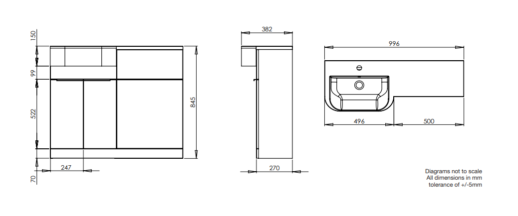 | Description | A single compact one metre unit which incorporates a 500mm basin unit and a 500mm back to wall unit. Available in 6 finishes with a choice of on-trend painted finishes including oxford blue, light gloss grey, gloss clay & gloss white, or the warmth of either of our contemporary textured wood finishes; tundra or havana oak. Simple chrome detailing and discreet door handles blend together perfectly, making it ideal for any modern bathroom interior. Installation is very easy, with no cutting required to fit the basin.Compact 1M unitCross-cut style textured wood finish |