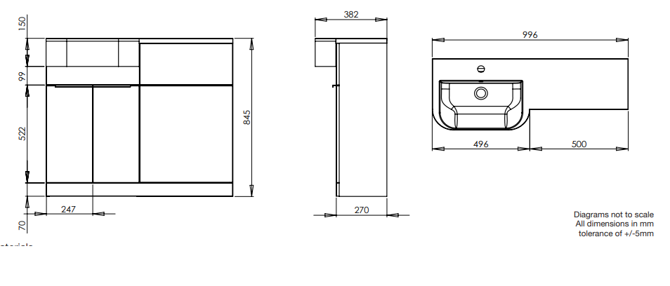DescriptionA single compact one metre unit which incorporates a 500mm basin unit and a 500mm back to wall unit. Available in 6 finishes with a choice of on-trend painted finishes including oxford blue, light gloss grey, gloss clay & gloss white, or the warmth of either of our contemporary textured wood finishes; tundra or havana oak. Simple chrome detailing and discreet door handles blend together perfectly, making it ideal for any modern bathroom interior. Installation is very easy, with no cutting required to fit the basin.Compact 1M unitCross-cut style textured wood finish