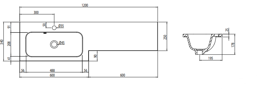 | Description | Nexus 1200 left hand basin is suitable with a Nexus 600mm Basin Unit and Nexus 600mm Back to Wall Unit. Easy to Install. Durable and Scratch Resistant. 10 years guarantee. 1220 (l) x 190 (w) x 360 (h). |