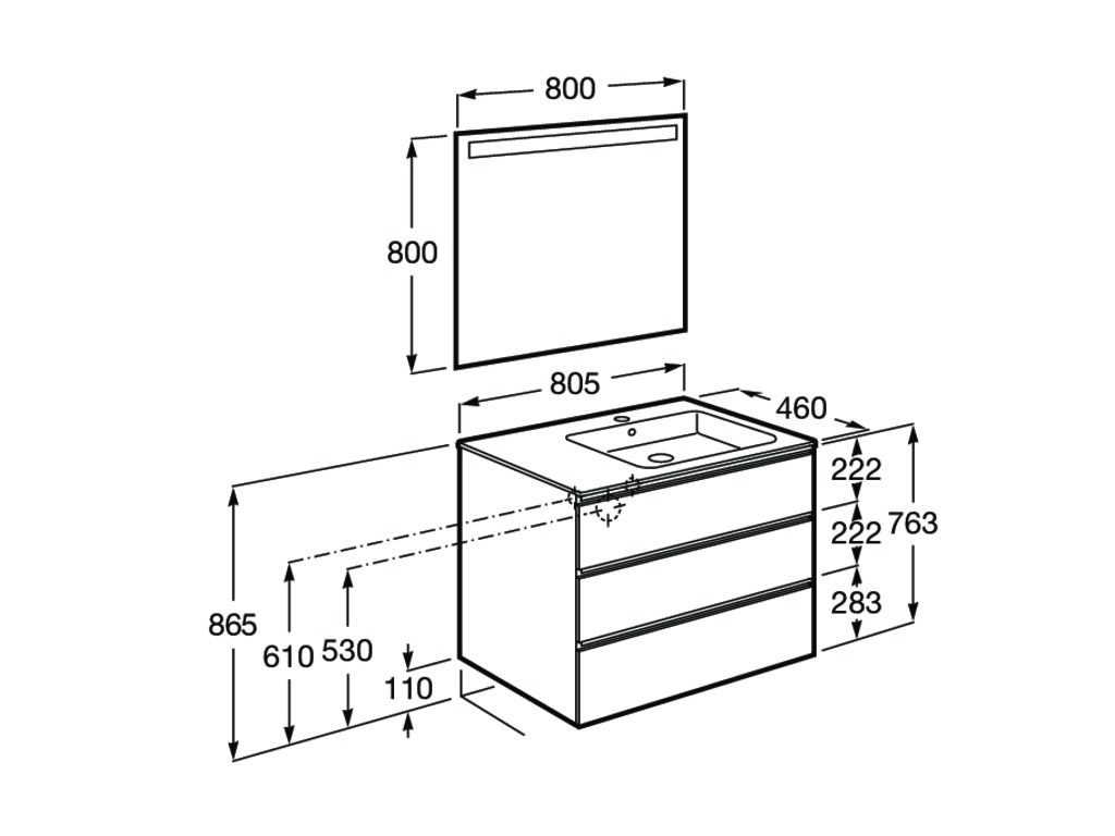 Dimensions / Basin and base unit / Height (mm): 763