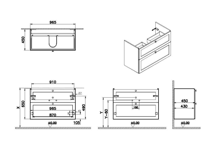 | Description | Width 100 cm Depth 46 cm Grip Black Button Handle Washbasin Type without washbasin Designer VitrA Design Team Colour Matt dark blue Finish-Body MDF Finish-Front Thermoform |