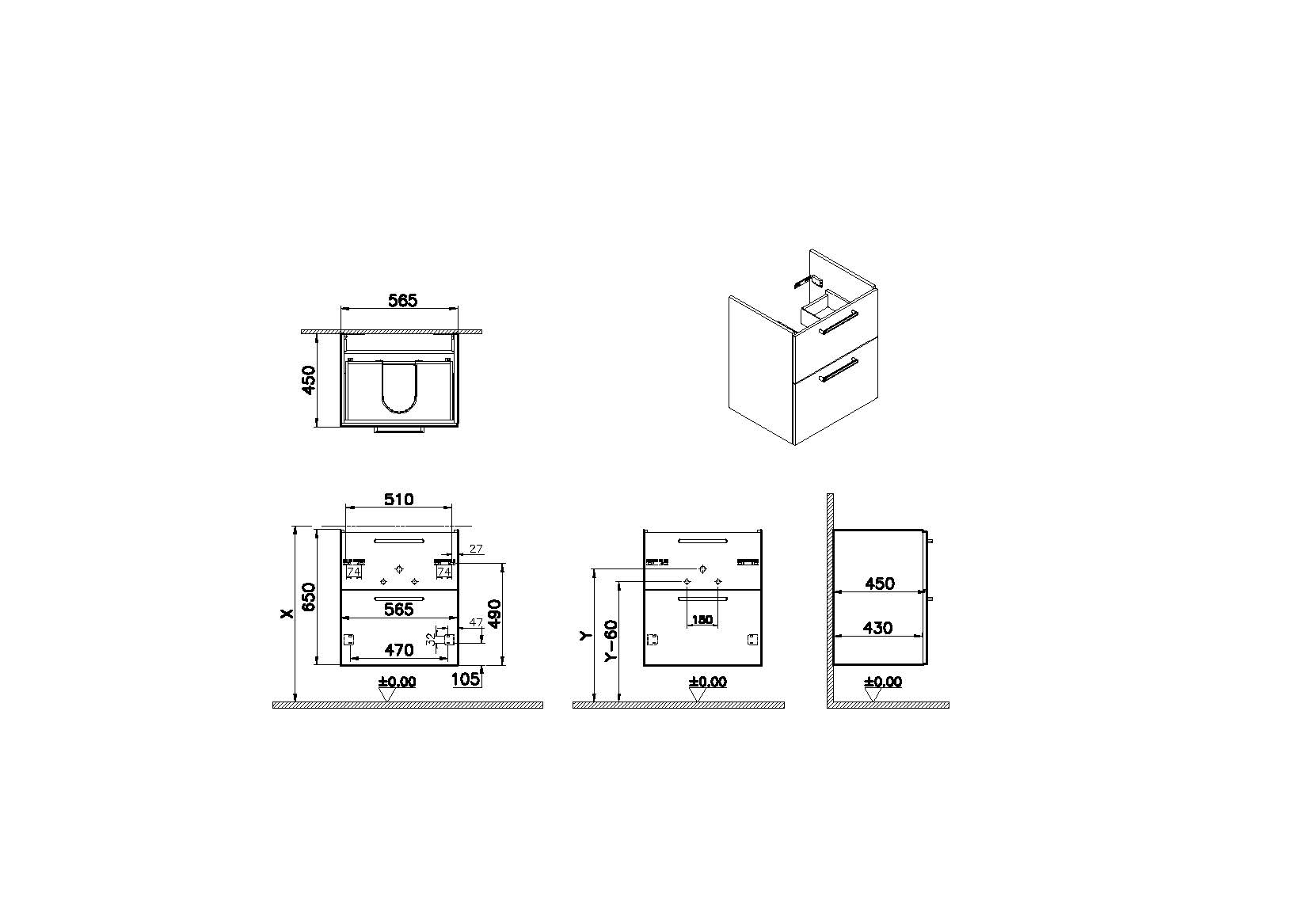 | Description | Width 60 cm Depth 46 cm Finish-Front Melamine Finish-Body MDF Washbasin Type without washbasin Grip Chrome Bar Handle Designer VitrA Design Team Colour Walnut |