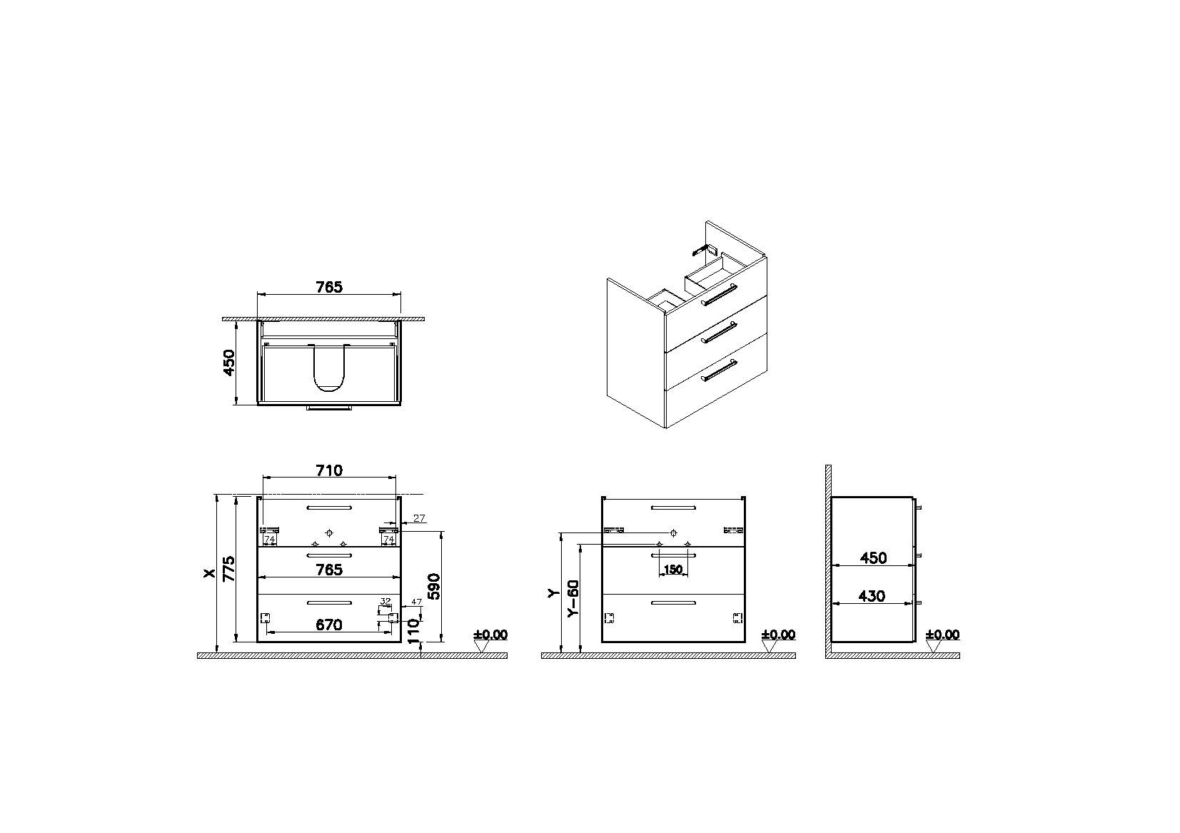 | Description | Width 80 cm Depth 46 cm Finish-Front PET Finish-Body MDF Washbasin Type without washbasin Grip Chrome Bar Handle Designer VitrA Design Team Colour High Gloss Pearl Grey |