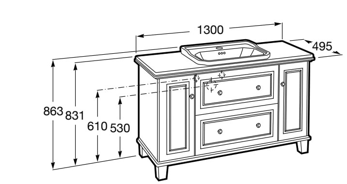 | Description | Basin position: Central Basin type: Drop-in / In countertop Closing and opening system: Soft and self close drawers Door type: Hinged Doors and drawers combination: 2 doors and 2 drawers Furniture configuration: Doors and drawers combination Installation type: Floor-standing Left hand opening Leg material/finish: Wood Right hand opening Shelf material: Natural wood Tap position: On the basin |