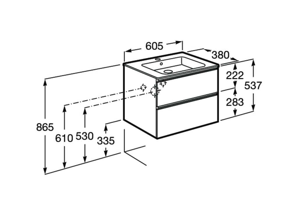| Description | Base unit / Door type: Sliding Base unit / Doors and drawers combination: 2 drawers Base unit / Internal dividers Base unit / Structure: Drawers Basin / Integrated shelf Basin / Shelf position: On both sides Basin / Taphole configuration: 1 taphole in the middle Basin Position: Central Dimensions / Basin and base unit / Height (mm): 537 Dimensions / Basin and base unit / Length (mm): 605 Dimensions / Basin and base unit / Width (mm): 380 Installation type: Wall-hung, Wall-hung with optional legs Material / Base unit: Chipboard Material / Basin: Vitreous china |