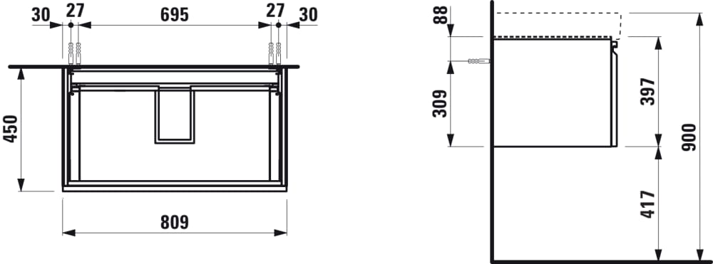 | Description | Adjustable legs Basin position: Central Basin type: Vanity Doors and drawers combination: 1 drawer Furniture configuration: Drawers Installation type: Wall-hung Internal dividers Internal drawers: 1 Internal shelves: 0 Legs included: 0 |