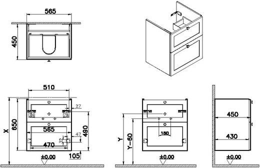 | Description | Root furniture is a complete bathroom solution offering washbasin units, side units, tall storage units in three designs and taps in two complementary designs; round and square. Compatible with 7055B003-0001, 7791B003-0001 and 7000B003-0001 washbasins. Handles available in chrome, matt white and matt black. This is a bathroom cabinet with a Matt Light Grey color and a thermoform front finish. It has a width of 60 cm and a depth of 46 cm, with a body made of MDF. The cabinet features a black button handle and does not include a washbasin. It was designed by the VitrA Design Team. |