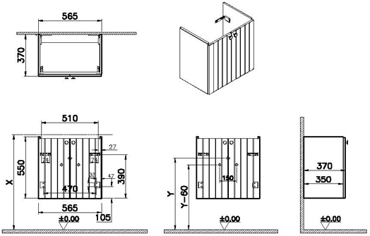 Root furniture is a complete bathroom solution offering washbasin units, side units, tall storage units in three designs and taps in two complementary designs; round and square. Compatible with 7035B003-0001 and 7790B003-0029 washbasins. Handles available in chrome, matt white and matt black. The VitrA Design Team presents a Matt Light Grey bathroom cabinet with MDF finish on the body and thermoform finish on the front. The cabinet has a width of 60cm, depth of 38cm, black button handle grip and does not include a washbasin.