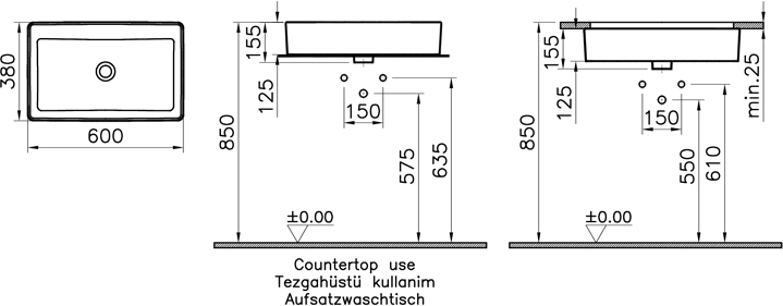 DescriptionNo tap hole options, white in color, designed by the VitrA Design Team and no overflow hole.