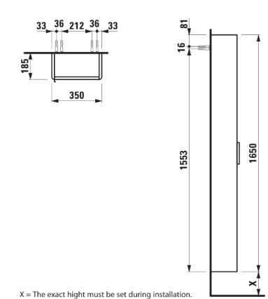 Tall cabinet, with small projection, 1 door, right hinged, 1 fixed shelf, 4 glass shelves is available to buy in increments of 1