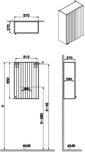 | Description | The product has a height of 85 cm, a width of 55 cm, and a depth of 25 cm. It comes with a 2-year guarantee and has a body made of MDF and a front with a thermoform finish. The door hinge is positioned on the right, and it is meant to be mounted on a wall. The product is available in a Matt graphite color, was designed by the VitrA Design Team, and has a black button handle grip. |