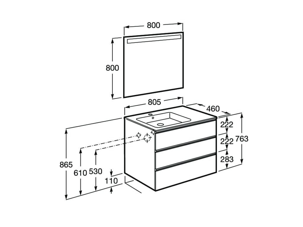 Dimensions / Basin and base unit / Height (mm): 763
