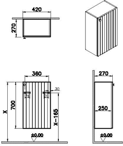 | Description | The product has a height of 70 cm, a width of 40 cm, and a depth of 25 cm. The front has a thermoform finish and the body is made of MDF. It comes with a 2-year guarantee and has a black button handle grip. The door hinge is positioned on the right, and the product was designed by the VitrA Design Team. It is meant to be mounted on a wall and is available in a Matt Retro Green color. |