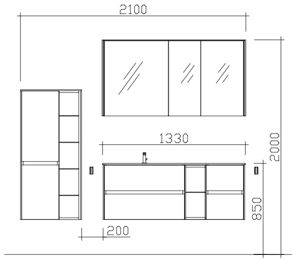 • Mirror cabinet 3-door incl. LED lights in canopy & LED side profile