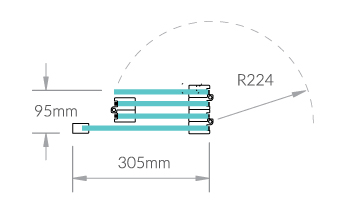 | Description | Each of the three 215mm hinged panels sit comfortably behind the 305mm fixed panel providing virtually unimpeded access to the bath, yet when in use extends to 950mm for excellent showering protection. |