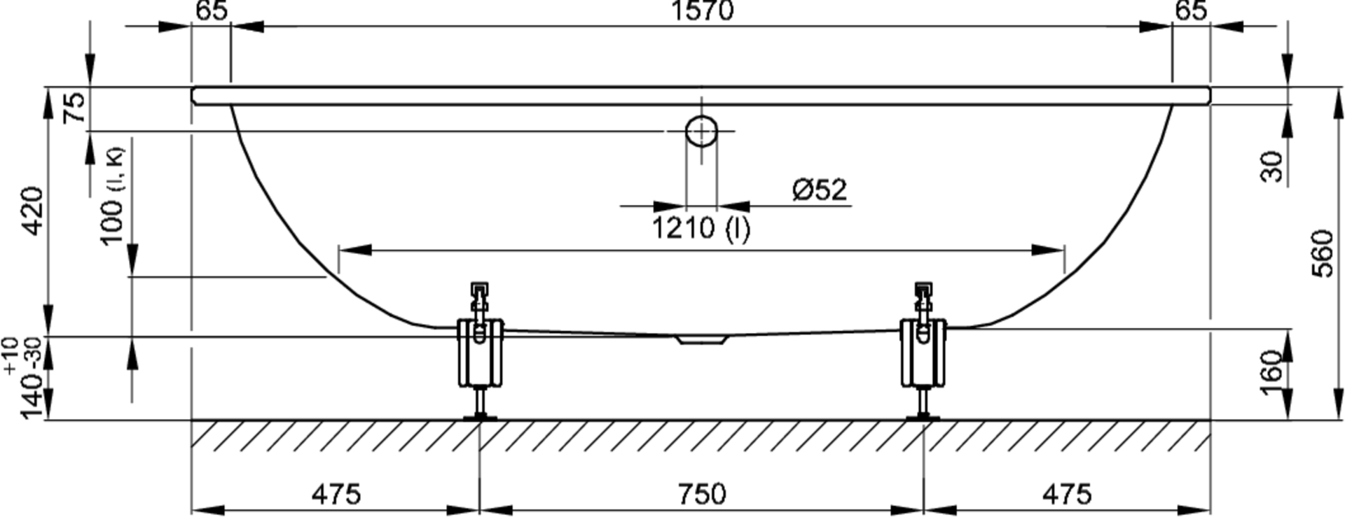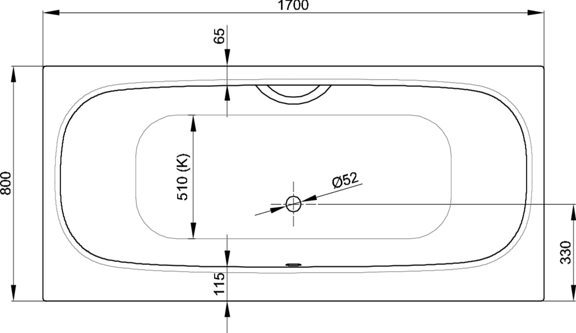 Dimensions: 1700 x 750 x 420 / 1210 mm Weight: 45 kg Capacity*: 128 l Edge height: 30 mm Corner radius: 10 mm Drain Diameter: 52 mm Lying Dimension: 1210 mm Scope of delivery: Including noise-reducing sound-dampening pads. Technical advice: The BetteDuett, article no. 3100: The rim on the overflowside is 50 mm larger, the internal shape is the same as BetteDuett article no. 3020. For professional installation we recommend the use of the original bath feet B23-1500. If the bath is to be fitted under a panel, please contact us for individual cut-out details.
