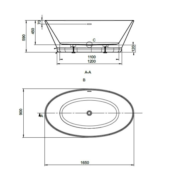 Chalice Minor Bath 1650x900mm is available to buy in increments of 1