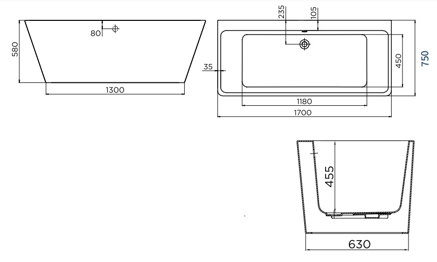 Technical Specifications: Seamless one-piece bath Incl. pre fitted waste and overflow in chrome Optional waste and overflow cover finish