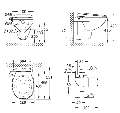 2 dedicated spray arms (1 for anal area, 1 for lady spray)