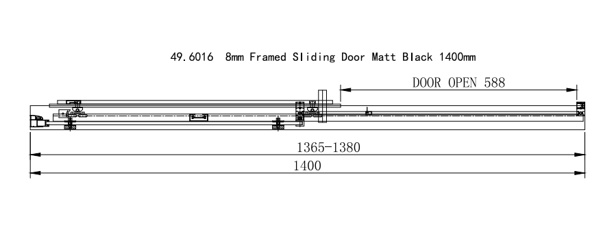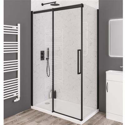 | Description | Width (mm.) 1400, Colour Matt Black, Adjustment (mm) 1365-1380, Door Opening (mm) 588, 8mm Glass Thickness, Product Type Slider Shower Doors, Manufacturers Warranty (Years) 10, Fully concealed fixings, Square edge handle included, Height (mm) 2000 |