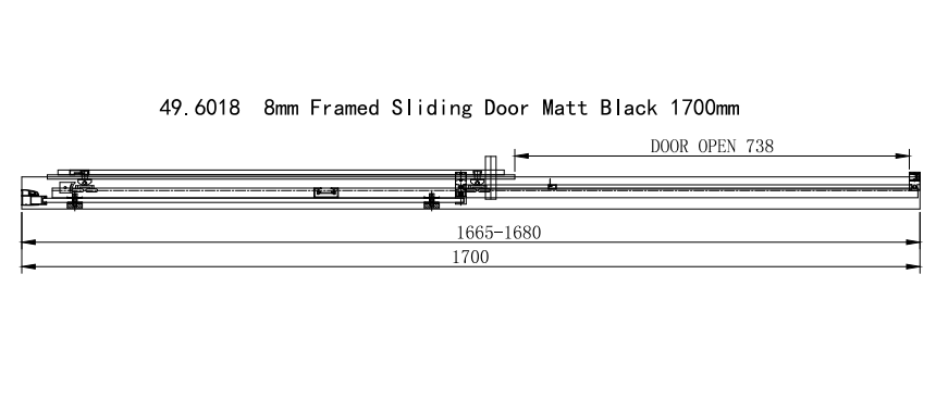 | Description | Width (mm.) 1700, Colour Matt Black, Adjustment (mm) 1665-1680, Door Opening (mm) 738, 8mm Glass Thickness, Product Type Slider Shower Doors, Manufacturers Warranty (Years) 10, Fully concealed fixings, Square edge handle included, Height (mm) 2000 |