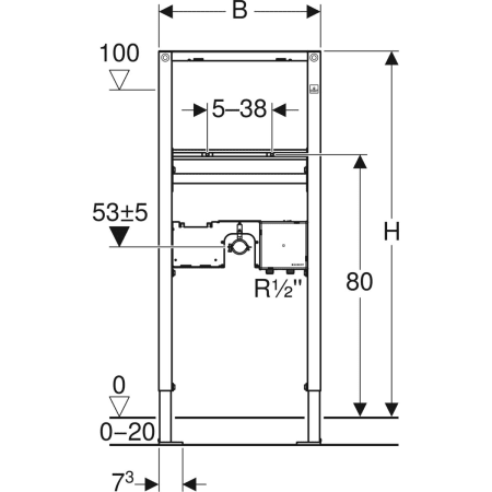 | Description | Geberit Duofix element for washbasin, 112 cm, electronic deck-mounted tap with concealed function box |