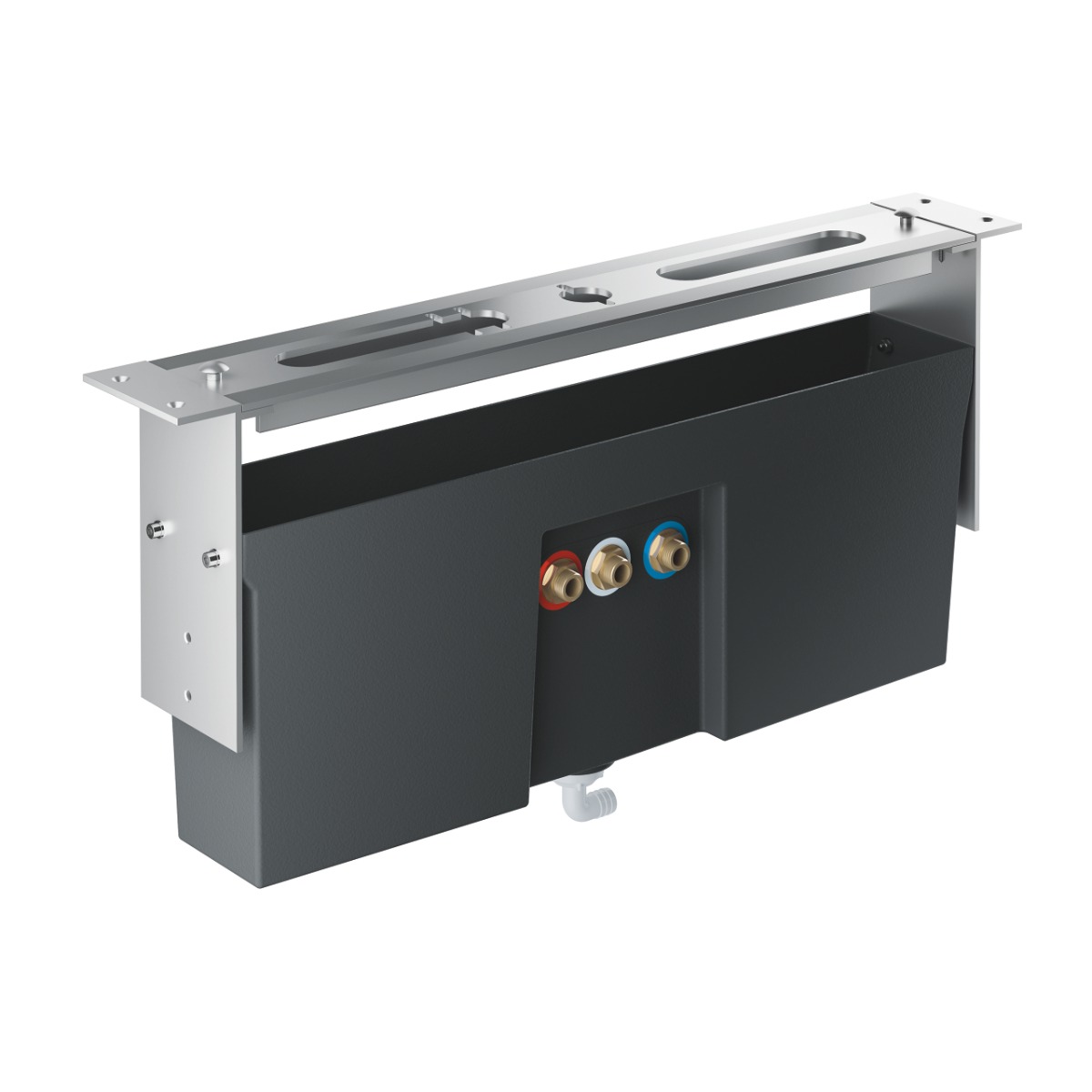 | Description | Baseframe for installation under tiled surround Base frame Drainage box with integrated outlet for splash water Allows for waterproofing of Wall construction surrounding the Concealed body With sealing sleeve Caps to cover screw fixations always come in chrome color |