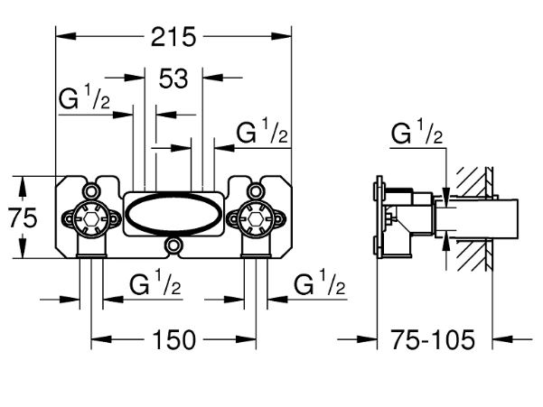 | Description | wall mounted 2 outlets 1/2" installation depth 75-105 mm flushing plug wall sealing installation device |
