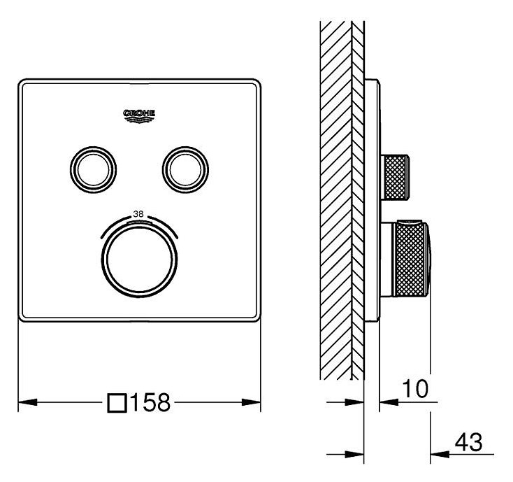 | Description | Going with the flow is all very well – but sometimes you want to be in control. The Grohtherm SmartControl concealed thermostat lets you do just that. It puts ergonomic, push-button handling and chic styling at the heart of your cosmopolitan bathroom. The innovative SmartControl technology allows you to select your desired spray source and adjust the water volume with the push-turn of a button. The two valves mean you can switch effortlessly between – or combine – head and hand shower, or between shower and bath. Integrated GROHE TurboStat technology prevents any unpleasant temperature fluctuations. GROHE EasyLogic markings and textured buttons with exchangeable symbols make it easy and intuitive to use. Family-friendly, the GROHE SafeStop override button allows you to set a maximum temperature of 38° C to prevent scalding – the GROHE SafeStop Plus optional temperature limiter lets you add a further limit of 43° C for an extra level of safety. Water-saving GROHE EcoJoy technology gives you the option of a reduced flow rate with no compromise on enjoyment. Thanks to the GROHE QuickFix system it’s swift and straightforward to install. The slim profile makes it easy to keep clean, and the dazzling, durable GROHE StarLight chrome finish will look pristine for years to come. With a slim, square design perfect for that minimalist, streamlined look, this product is bound to enhance your bathroom scheme. |