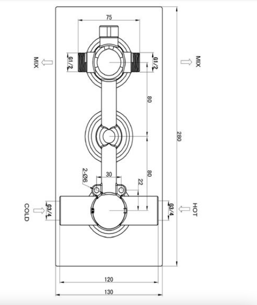 Cross thermostatic concealed 2 outlet shower valve, LP 0.2
