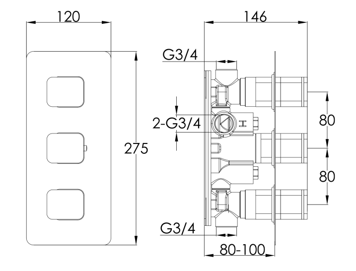 HIX thermostatic concealed 2 outlet shower valve LP 0.2 |