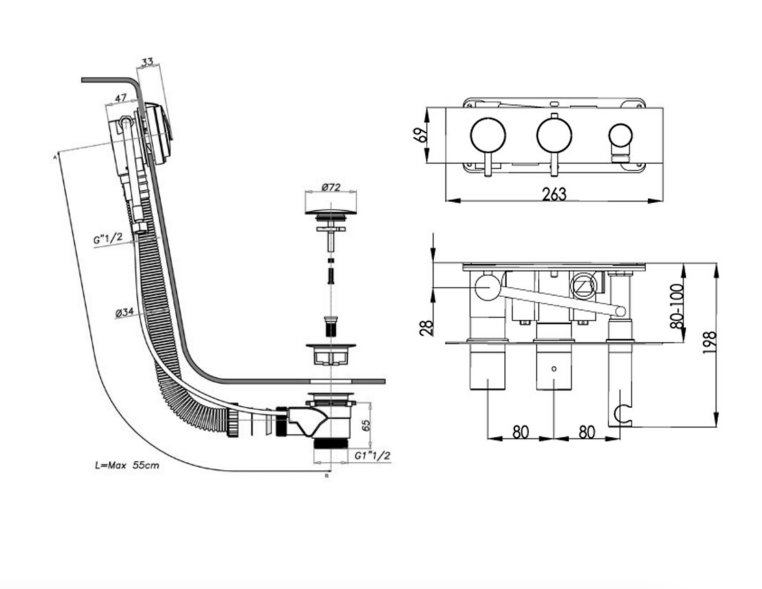 | Description | 5868 – Thermostatic concealed 2 outlet shower valve, with attached handle Specification